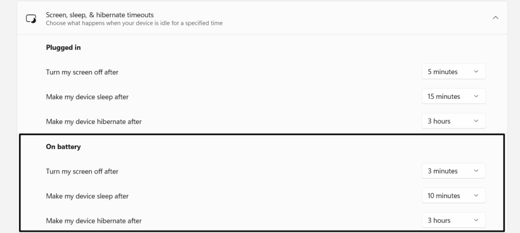 3.Bontsa ki aKépernyő, alvó állapot és hibernált időkorlátszakaszt, és folytassa annakAlvásszakasz.