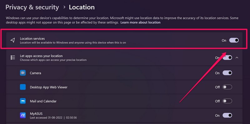 1. Engedélyezze a Helyszolgáltatást a Windows 11 rendszerben