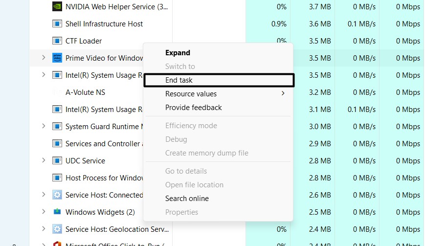 2.Keresse meg aSkypefeladat aFolyamatokszakasz, kattintson a jobb gombbal, és válassza kiVégső feladat-