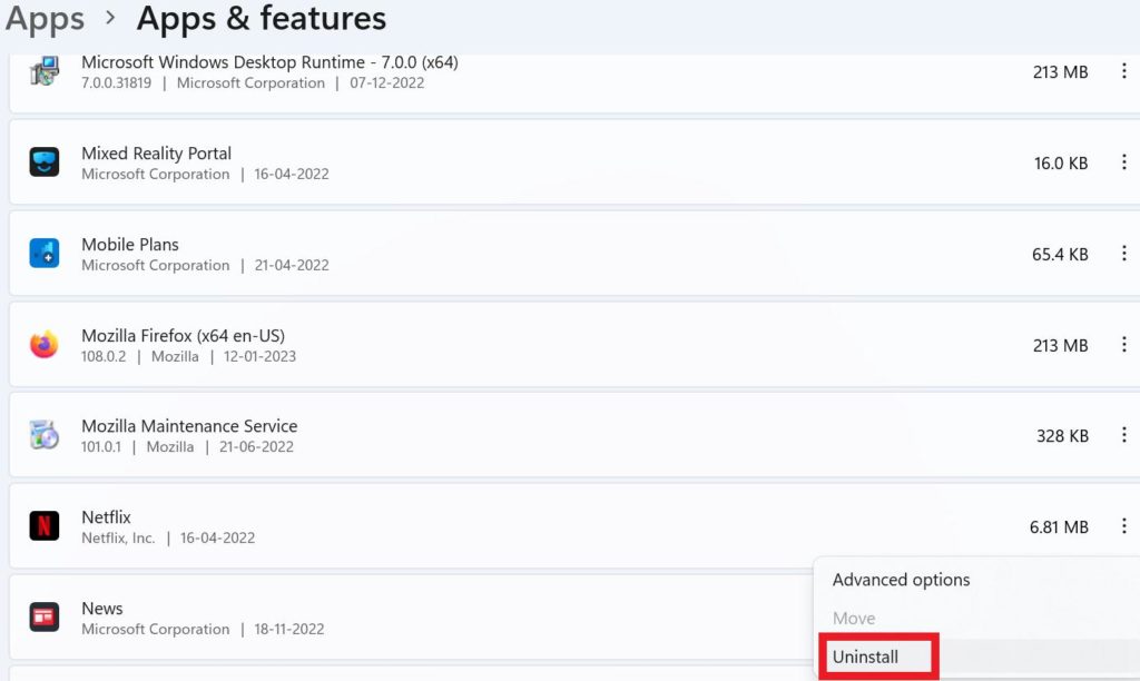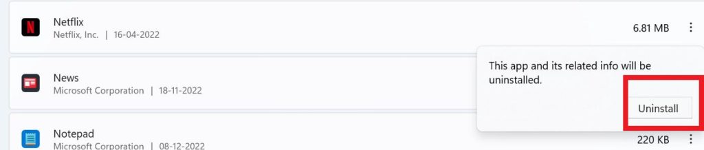 Ismételje meg ezt a folyamatot minden olyan alkalmazáshoz, amelyet eltávolítani szeretne.