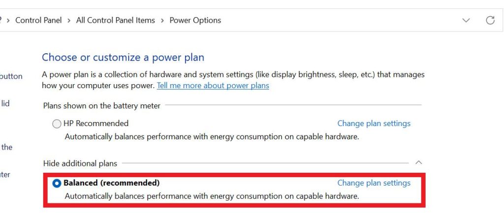 6. javítás: Módosítsa az energiabeállításokat
