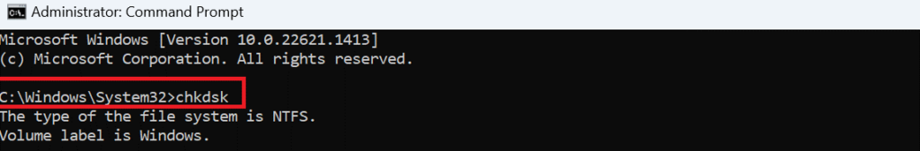 - Most írja be'chkdsk'és nyomja meg aBeír