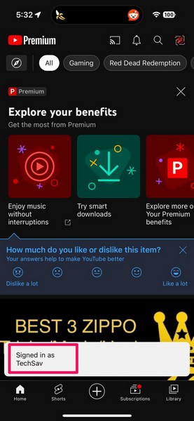 5.Ha aktív YouTube prémium előfizetéssel rendelkezik, akkor érintse meg aTartsa az előfizetési gombota jelenlegi folytatási utasításon.