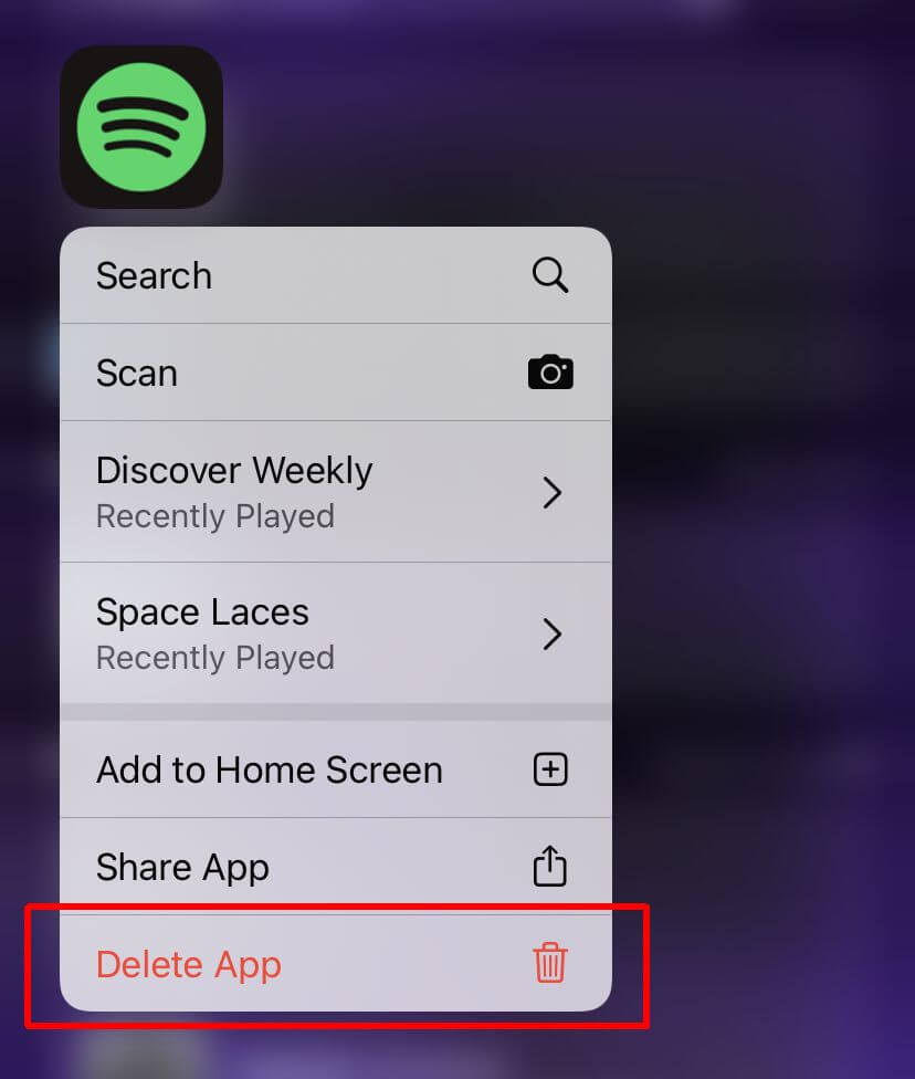 - A kezdőképernyőn koppintson és tartsa be a Spotify alkalmazás ikonját, amíg el nem mozog.