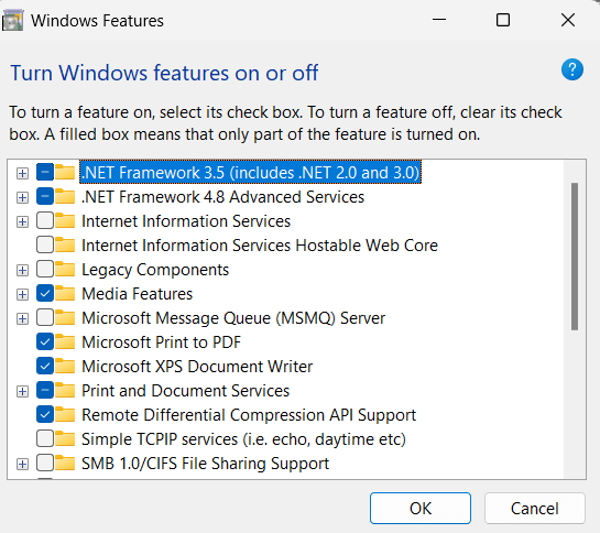 A Windows a .NET -keretrendszer telepítését kezdi a Windows szolgáltatások használatával. Ez a folyamat eltarthat egy ideig, és kérheti Önt, hogy indítsa újra a számítógépet a telepítés befejezéséhez.