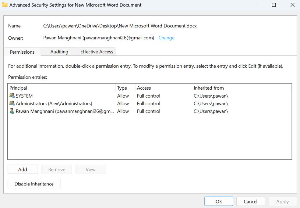 8. lépés:Végül kattintson az Alkalmaz és az OK gombra az Advanced Securities ablakban.