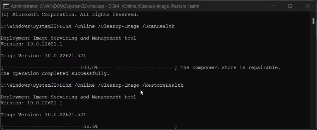 Fájlok cseréje:DISM /Online /Cleanup-Image /RestoreHealth