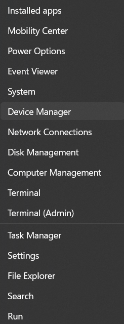 Nyissa meg az „Eszközkezelőt” a Windows Key + X megnyomásával és a „Device Manager” kiválasztásával. Bővítse a „Hálózati adapterek” részt, és ellenőrizze a hálózati adapter állapotát.