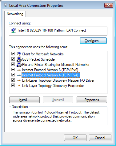 A Network Connections ablakban kattintson a jobb gombbal a hálózati adapterre, majd válassza a „Tulajdonságok” lehetőséget.