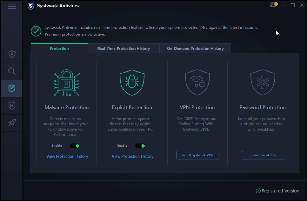 A Systweak Antivirus valós időben működik, hogy folyamatosan védve legyen. Számos rosszindulatú programot felismer, és eltávolítja őket a számítógépről. Ez a fantasztikus vírusirtó a kártevő elleni védelem mellett tűzfal és exploit védelmet is kínál. Az adathalászat és a káros webhelyeket illetően a Systweak Antivirus webvédelmi funkciót biztosít, amely távol tartja a felhasználókat ezektől a webhelyektől.