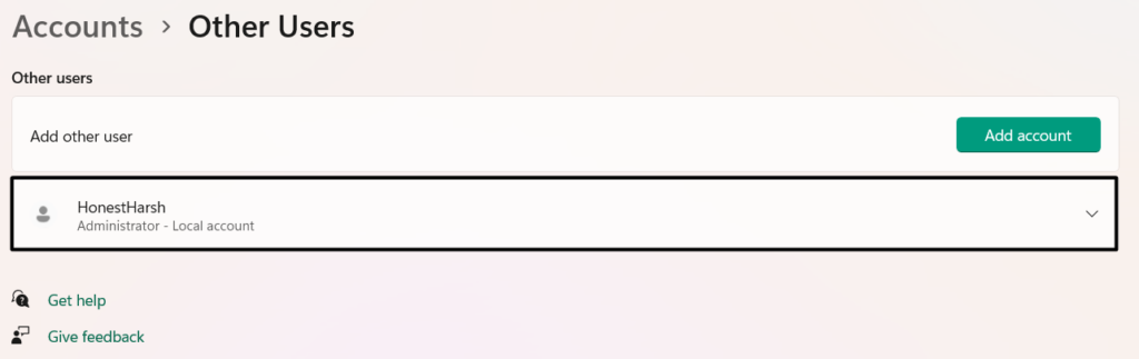 2.AFiókokszakaszban válassza ki aMás felhasználókalatti opciótFiókbeállításoka létrehozott fiókok megtekintéséhez.