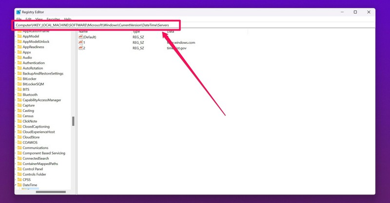 HKEY_LOCAL_MACHINESOFTWAREMicrosoftWindowsCurrentVersionDateTimeServers