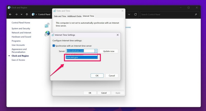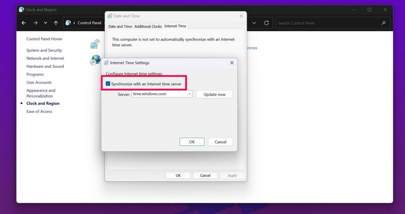 Ezután ellenőrizze, hogy a Windows 11 kiadásában nem működik -e az idő szinkronizálása.