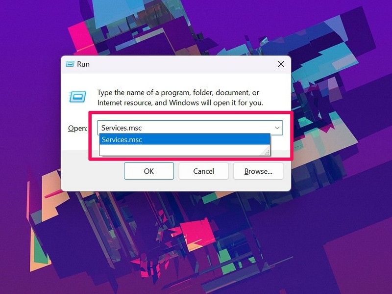 2.BeírServices.mscA szövegmezőben, és nyomja meg az Enter gombot.
