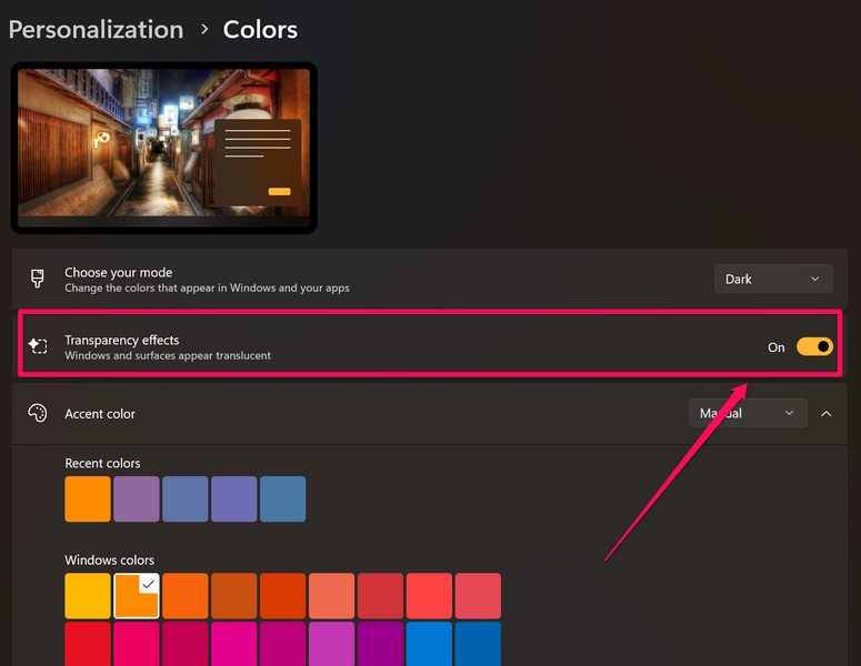 Hogyan lehet engedélyezni az átláthatósági hatást a Windows 11 -ben?