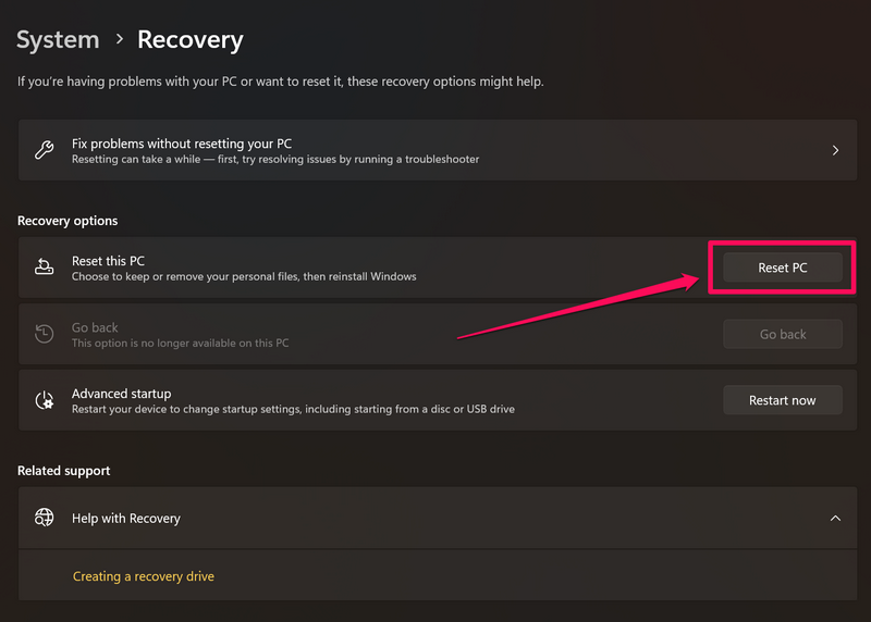 Most, ha a fenti módszerek nem oldják meg az átláthatósági hatást, és nem működnek a Windows 11 -ben, akkor az egyetlen lehetőség, amelyben a PC vagy a laptop visszaállítása. A Windows eszköz visszaállítása újratelepíti a Windows 11 -et a számítógépen vagy a laptopon.