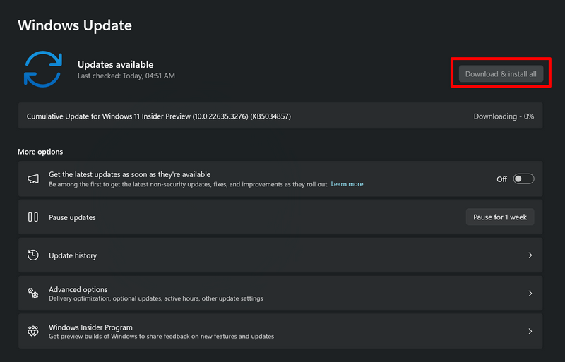 4.Miután a frissítések rendelkezésre állnak, automatikusan el kell kezdeniük a letöltést. Ha nem, kattintson aTöltse le és telepítse az összes gombota folyamat kezdeményezéséhez.