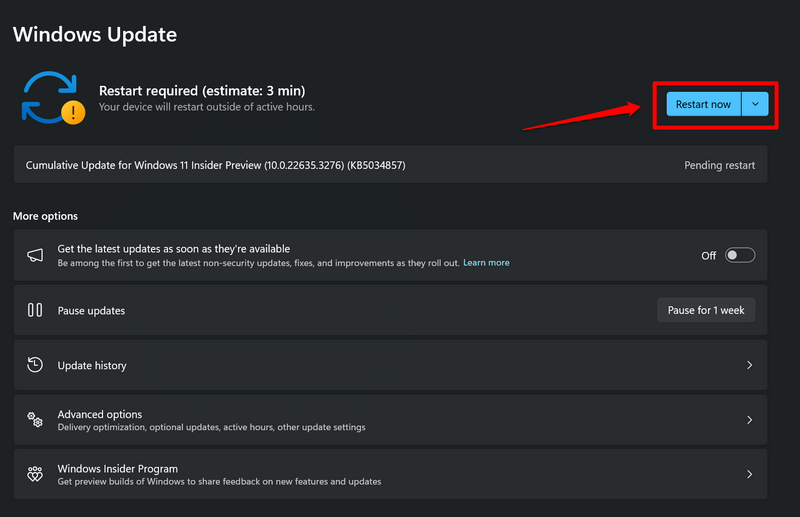 6.A Windows frissítéseinek letöltése után kattintson aIndítsa újra a most gombotvagymanuálisan indítsa újra a készüléketA Start menüből a telepítés és alkalmazáshoz.
