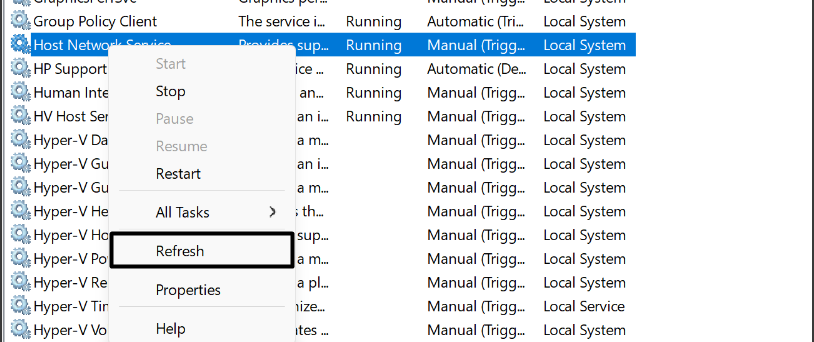 4.Végül válassza ki aFrissítOpció a legördülő menüből a gazdagép -hálózati szolgáltatás visszaállításához és az összes probléma megoldásához.