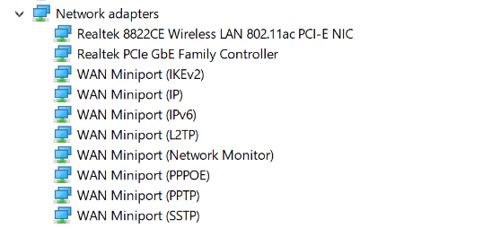A WAN Miniport Network Adapters újbóli engedélyezése