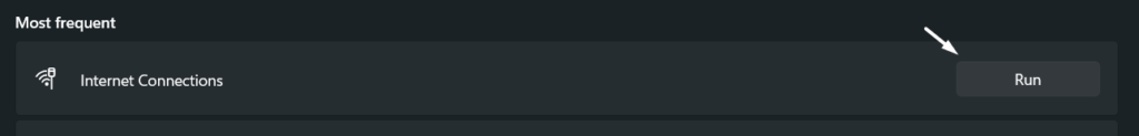 1.A kezdethez folytassa aHibaelhárításaBeállításokalkalmazás és keresése aInternetkapcsolatokhibaelhárító aLeggyakoribbszakasz.