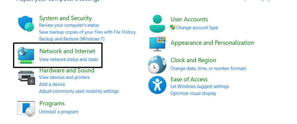 1.NyitottKezelőpanel alkalmazása Windows 11 PC -n, és lépjen aHálózat és internetszakasz.