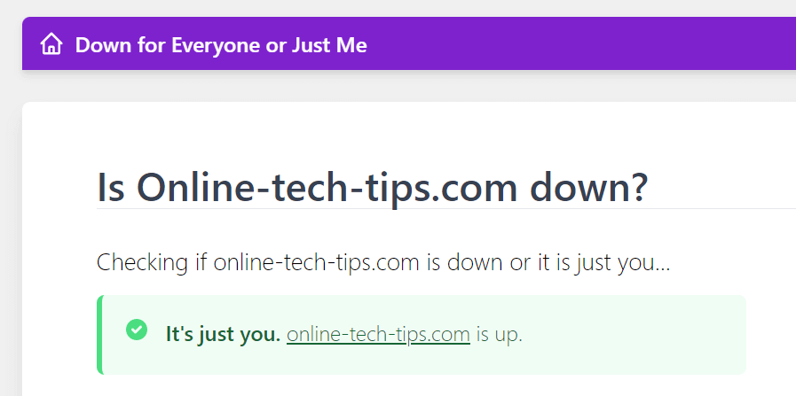 Ellenőrizheti, hogy a webhelye kieséssel áll -e ki egy online eszköz használatávalLefelé- Nyissa meg ezt a webhelyet a böngészőben, írja be a weboldal linkjét, és a webhely megmondja, hogy az oldal felfelé vagy lefelé van -e.
