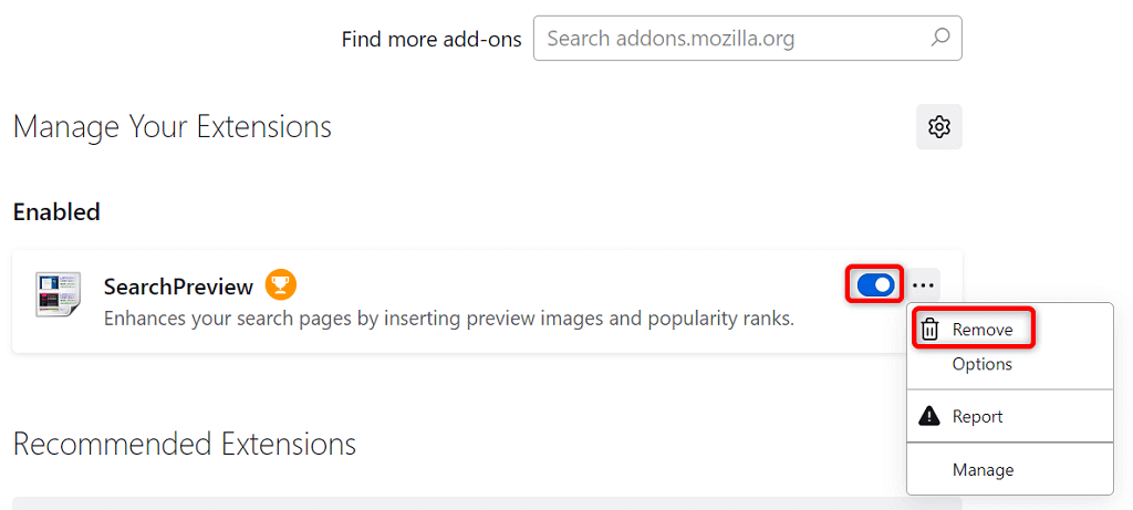 - Keresse meg a kiegészítőt a letiltáshoz, és kapcsolja ki annak opcióját.