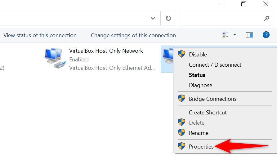 - Kattintson a jobb gombbal a hálózati adapterre, és válassza a VálasszonTulajdonságok-