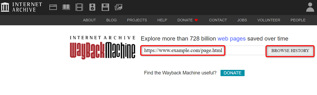 Használja a Wayback Machine -t az oldal gyorsítótárazott verziójához való hozzáféréshez