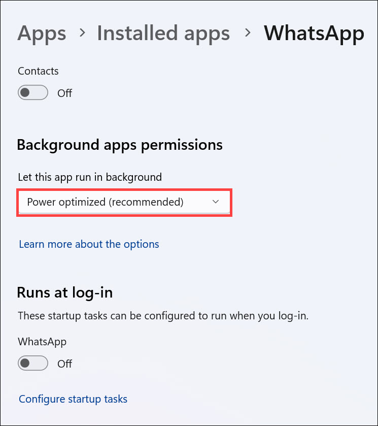 A Windows 11-ben lehetőség van arra, hogy megakadályozza az alkalmazások háttérben futását. Ez zavarhatja a WhatsApp Desktop alkalmazást. Ha a Windows 11 rendszerű számítógépe megakadályozza, hogy a WhatsApp a háttérben fusson, akkor ezt a funkciót be kell kapcsolnia.
