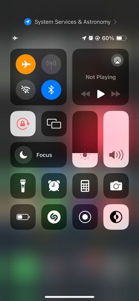 1. Csúsztassa le a jobb felső saroktólaz iPhone képernyőjén, hogy lehozza aIrányító központ-