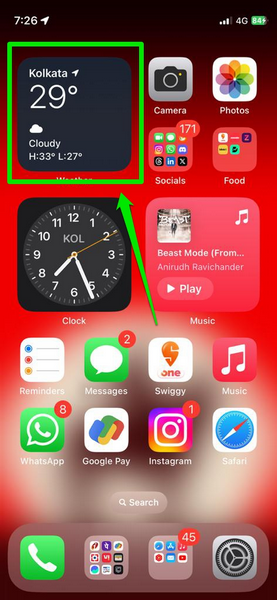 5.Miután engedélyezte az említett beállításokat az iPhone -on lévő alkalmazásokhoz, a kütyüknek képesnek kell lennie a háttérben frissítésre, hogy a frissített információkat a kezdőképernyőn jelenítse meg.