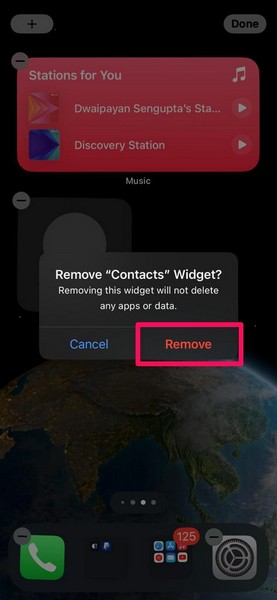 2.Válassza ki aTávolítsa el a widgetOpció a következő menüben.