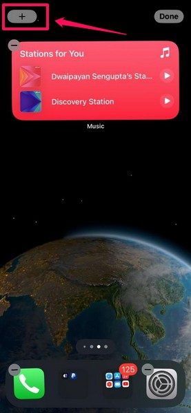 4.Miután a widget eltávolításra került,Érintse meg és tartsa be az alkalmazás ikonját vagy üres területétAz iPhone kezdőképernyőjén aÍrja be a Wiggle módot-