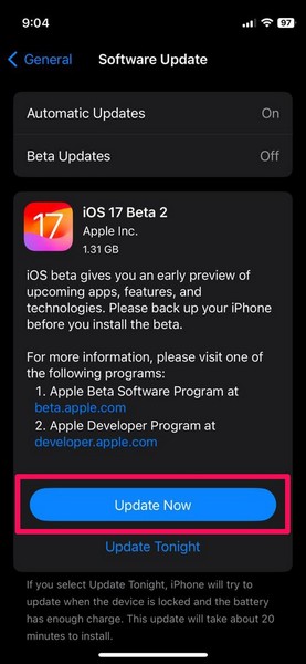 5.Miután megjelenik a legújabb iOS frissítés, érintse meg aFrissítse mostgomb a folyamat kezdeményezéséhez.