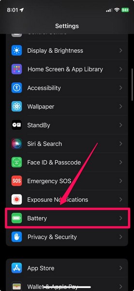 Egy másik hasonló rendszerbeállítás, amely az iPhone -on nem működő kütyüket okozhatja, az alacsony teljesítmény mód. Az alacsony teljesítményű üzemmód alapvetően korlátozza az eszközfunkciókat, például a háttér-alkalmazás frissítését, a hálózati műveleteket és az egyéb energiatartalmú műveleteket az akkumulátor mentése érdekében.