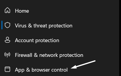 1.Nyissa ki aVírus és fenyegetésvédelemBeállítások és válasszaApp & böngészővezérlésA bal oldali ablaktáblából.