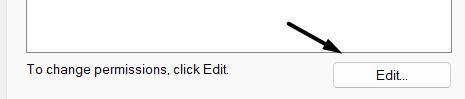4.Ha nincs jelölése, akkor ez azt jelenti, hogy nincs engedélye a kiválasztott fájl olvasására és megírására. Ebben az esetben kattintsonSzerkesztés…Ugyanazon a parancson.