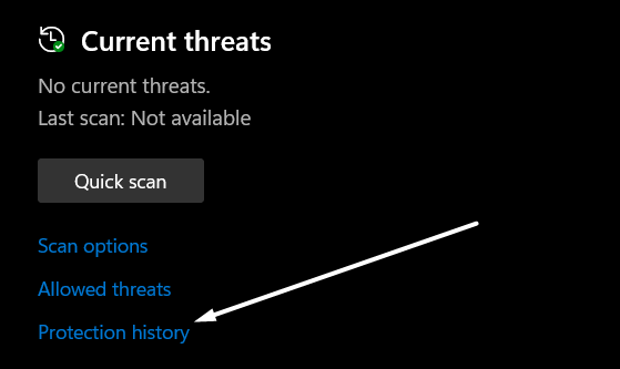 2.Kattintson aVédelmi előzményekopció aJelenlegi fenyegetésekszakasz.