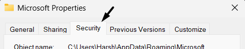 4.ABiztonságFület, válassza ki a felhasználót vagy a szükséges felhasználót az adott Microsoft mappához való hozzáféréshez.