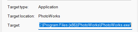 2.Haladjon aParancsikonszakaszban és ellenőrizze a fájl helyét aCélmező.