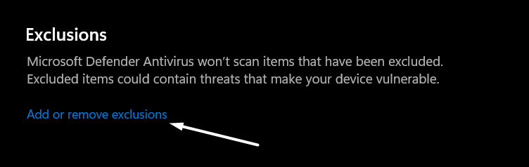 Ha a rejtett rendszergazdai fiók engedélyezése nem segíti a hibát, azt javasoljuk, hogy zárja ki az adott fájlt, mappát vagy programot a Windows Defender tűzfal biztonsági radarából.