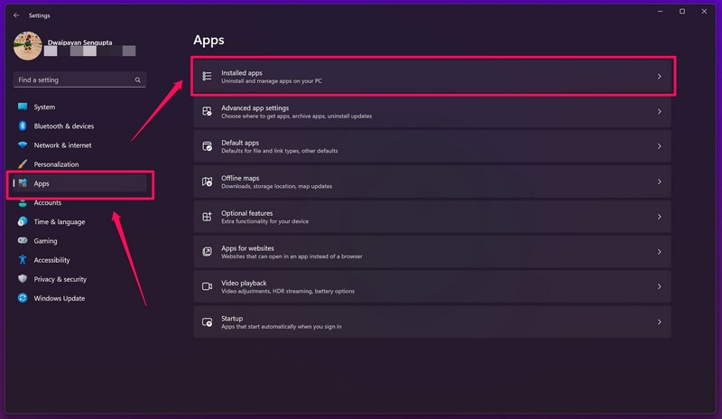 2.AAlkalmazásokA bal oldali navigációs sáv fülét kattintson aTelepített alkalmazásokopció.
