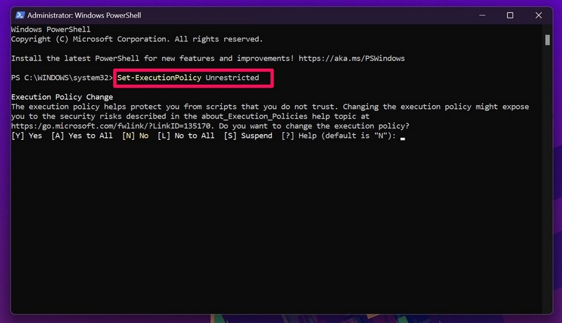 3.SajtóYés nyomja meg az Enter billentyűt, hogy megerősítse a PowerShell -i műveletét.