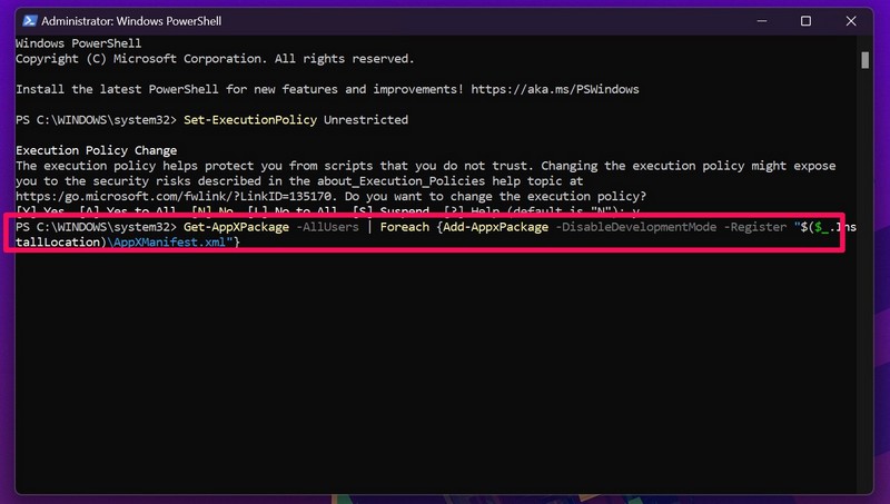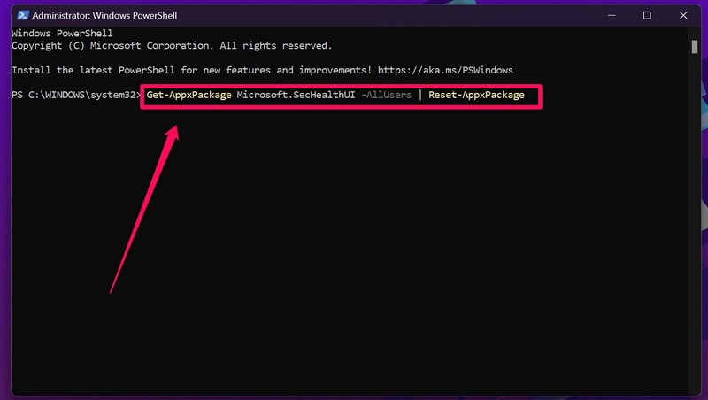 4. Visszaállítsa a Windows Security -t a PowerShell használatával a Windows 11 -ben