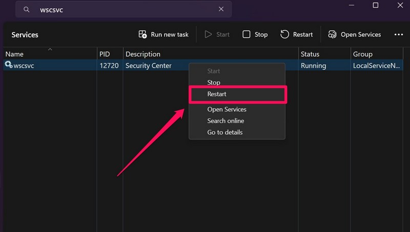 Valamilyen oknál fogva, ha a Windows Security Service problémákat tapasztal az eszközén, akkor megtapasztalhatja a Windows Security -t, amely nem működik a Windows 11 -ben. Ebben az esetben újraindíthatja a Windows Security Center szolgáltatást a Task Manager -ben. Kövesse az alábbi lépéseket az alábbiakhoz: