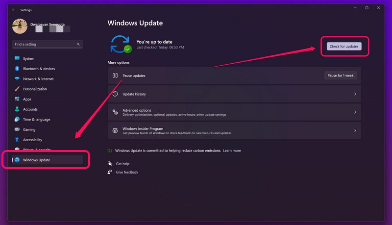 Egy másik tényező, amely olyan rendszerszintű problémákat okozhat, mint például a Windows 11-ben a Windows Security alkalmazás, az eszközre telepített elavult Windows verzió. A hibák vagy hibák bizonyos Windows frissítésekben problémákat okozhatnak a rendszer alkalmazásaival, és megakadályozhatják, hogy megfelelően működjenek.