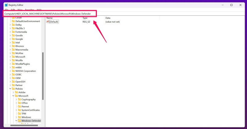 HKEY_LOCAL_MACHINESOFTWAREPoliciesMicrosoftWindows Defender