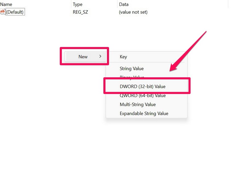 6.Vigye el a kurzortÚjés válassza ki aDWORD (32 bites) értékopció.